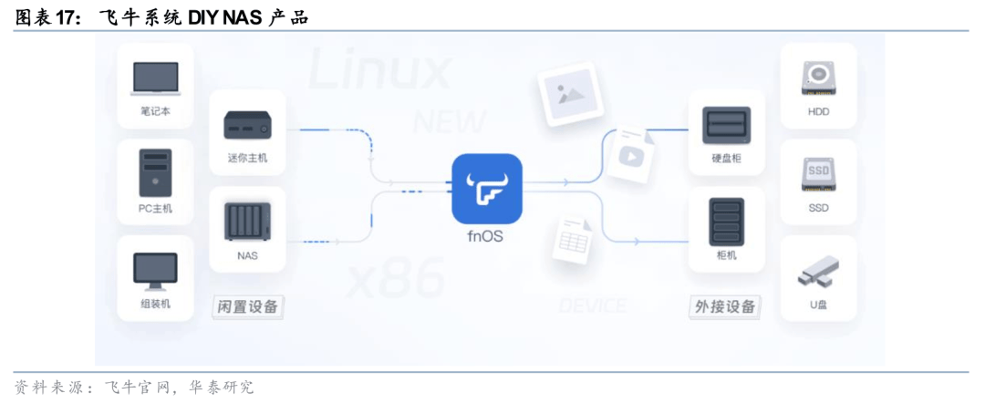 除了采办成品NAS,部门消费者能够通过飞牛等系统DIY NAS 产物。飞牛私有云操做系统fnOS是一款国产免费NAS系统,基于Debian Linux深度开辟,专注于为小我及家庭用户供给易用、平安的数据存储取办理处理方案。一些DIY快乐喜爱者能够基于系统,利用旧硬件低成本搭建NAS。