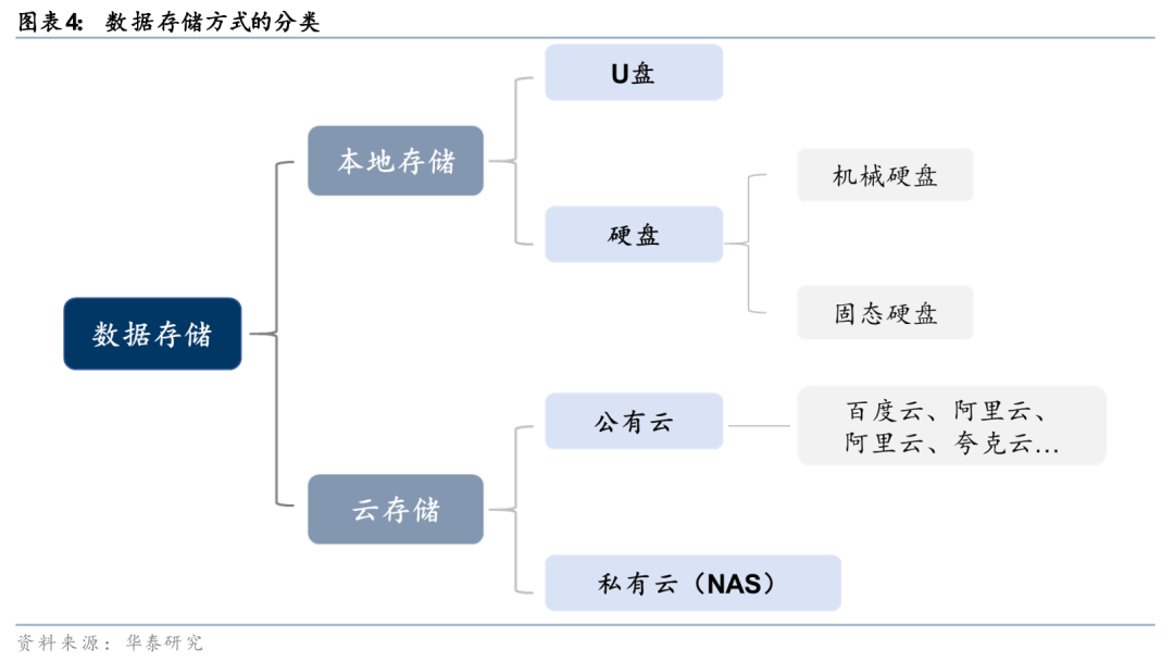 现无数据存储体例分为当地存储和云存储两大类。当地存储次要指U盘、机械硬盘、固态硬盘等保守存储体例,云存储又分为以百度网盘、夸克网盘为代表的公有云存储,及NAS私有云存储体例。当地存储体例下,所无数据均留存正在当地,私密性高但无法完成设备之间高效的数据传输和同时拜候,而云存储的呈现无效处理了当地存储的痛点,正在当下数据量高速增加的布景下,使用逐步丰硕。