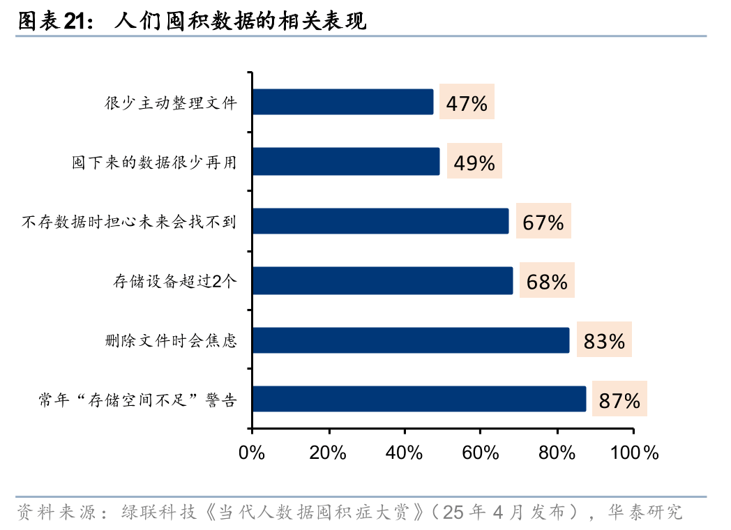 数据存储空间不脚带来了诸多未便。按照绿联科技于2025年4月发布的《现代人数据囤积症大赏》,用户遍及面对数据存储焦炙。87% 的人群常年会收到“存储空间不脚”的提醒,83% 的人暗示正在删除文件时感应焦炙,68% 的人存储设备数量跨越两个。正在痛点层面,“存时不敷存,存得乱;用时欠好找,找得烦”几乎是对用户存储体验的实正在写照。用户对存储的需求已不再局限于纯真的“存放”,而是进一步延长至少设备间的联动性、数据现私取平安、智能分类归档及近程拜候等方面。调研数据显示,被访人群但愿数据存储设备具备多设备同步(74。15%)、数据加密(61。07%)、从动分类归档(59。44%)、近程拜候(54。09%)及智能去沉(50。22%)等功能,反映出存储产物正在“效率+平安+智能”标的目的上的升级趋向。